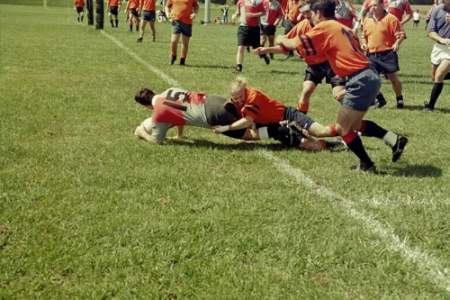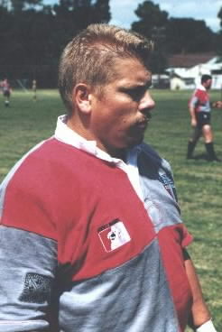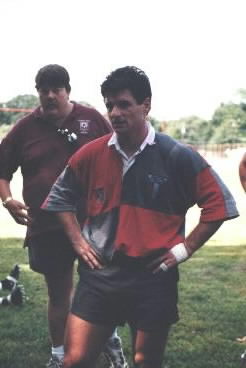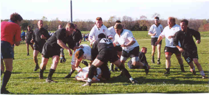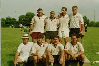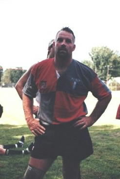 Picture of Darryl decided to select Pat at wing rather than rotating him at center. It was a stroke of genius in that we set up Pat with 6 trys for the day! Pat has power and speed and when the ball hits his hands his surge to the tryline is awsome. Steve ,our wily veteran from Michigan, was the magic catylst during our attack in that he has an outstanding ability to attack the gap or glide behind his ball carrying mates to retain or reverse the flow. Our River mates played their heads off and we destroyed Towson State and PAC II in the afternoon to win the Plate competition. Jonathon looked fabulous at hooker and Darryl as usual turned in a great effort as he has all summer.