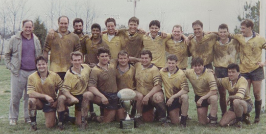 Mike Coyner is knelling to far left. To Mike's left is JMU's legendary rugby coach Mark Fowler.