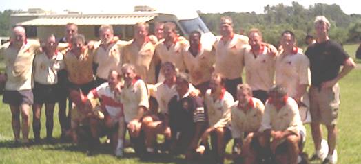 Thank you and a well done to the Gentlemen that made the trek to Edgehill Farm and competed in the Commonwealth Cup May 22,2004. The sun and heat was a bit of a factor so our first match v Wild Geese was a "warm up" session for us. We worked on our tackling practice and attempted to experiment with a workable offensive plan. We lost the match but we learned. We rested in the shade,reviewed past mistakes,repented,and recovered for an outstanding effort v The Sons of Beaches. Will Thornton sorted out our attack with some innovative tactics that rewarded us with devastating offensive pressure up the middle from our flankers,Stuart Corker,Jon Hill, John Via and Will's courageous running. Otis at scrumhalf never faded in the heat--his duties and responsibilites today were titanic under the circumstanse. Paul Meyer,once again, was the scrummage machine. Charlie's consistent ball retention skills in the close contact stuff was a comfort. Frank Punch's work in the lineouts and timely offense was superb. Connie Roussous, our venerable fullback, who goes back to the seventies in these woods was impressive with the old juke and jive moves that sorely pressed the defense. Deke Ealy and Jon Hill made some impressive hits and had some good runs. Thank you Jeff White for all your toll at hooker. Alas,we lost our lead in the second half as our focus faded off temporarily but we finished the match with the try of the day. Once again we exploded up the middle starting with Corker to a ball up to Via who took on three or four defenders about 10 meters to a textbook pass back to the inside for our bursting prop,Larry, who touched it down between the sticks. Great finish Boys!