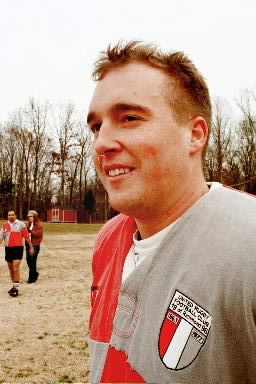 Build up a repertoire of different warm-ups- double-touch for example, "basketball" if you have use of a full field, "baseball" is another fun game. Change it for each practice. One I like is where you pair players off. They must face each other, hands on each other's shoulders, and then the one must attempt to tramp on the other's toes with either foot. The fellow who is being tramped on tries to dance out of the way without breaking the hands-on-shoulder contact. When you blow the whistle, the roles are changed. It is great fun, tires you quickly and generates howls of laughter.
