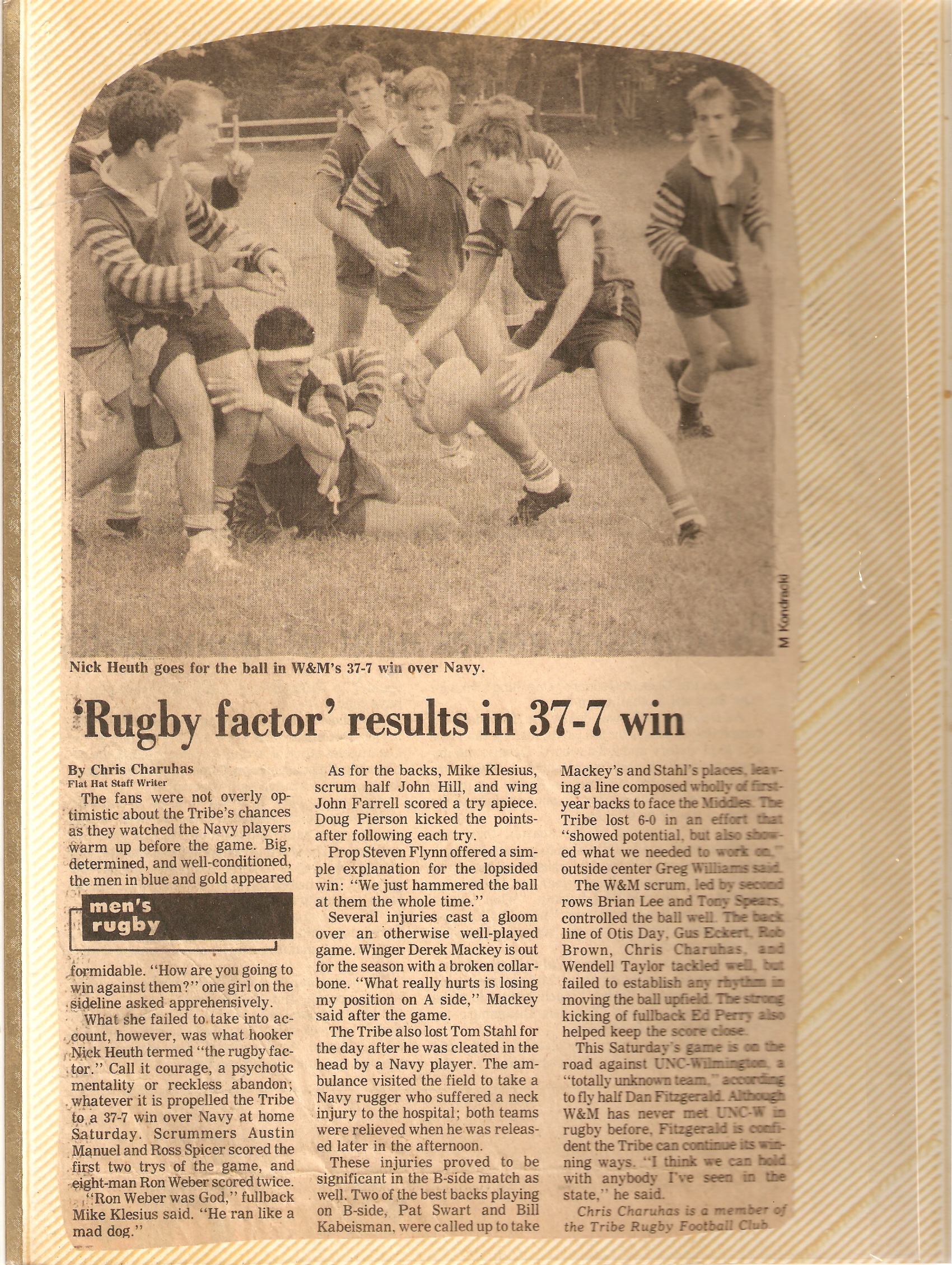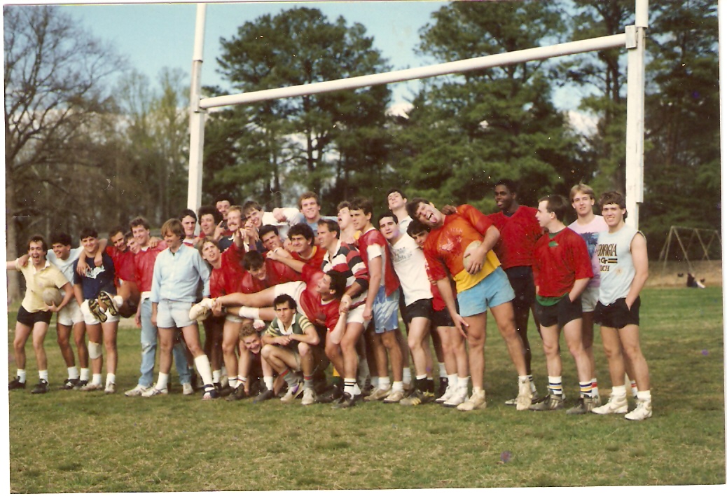 Rugby Practice Side late 80s,pictured in no particular order Ross Spicer,Jon Hill,Anthony Royer,Austin Manual,John Ferrell,Jeff Heineman,Robbie Brown,Bruce Weaver,Wendell Taylor,Chris Charuhas,Steve Flynn,Dan Fitzgerald,Whitney Lester,Cary Kennedy,Doug Pierson,Mike Kliesus,Jim Boyd,Greg Hare