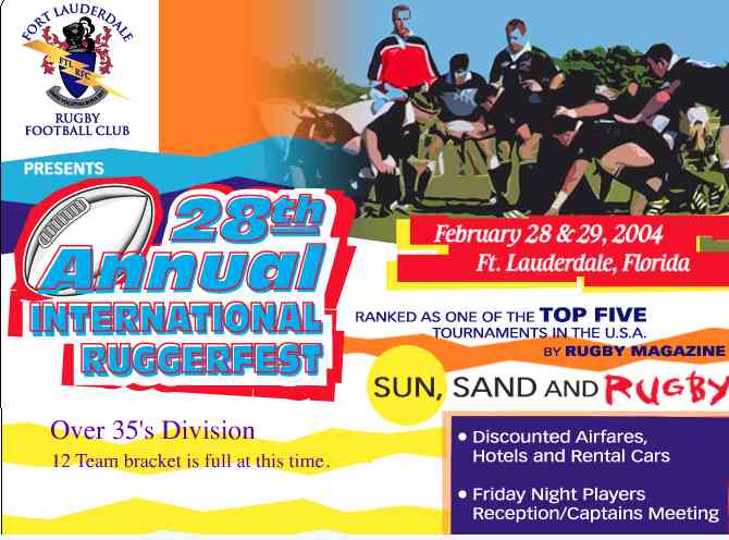 We still do not know "officially" when we play, yet the tournament is billed as Saturday and Sunday, February 28th and 29th, with the Over 45's playing only on Sunday. Regardless, we intend to have a practice at 4:00 PM on Friday, February 27th, so plan to arrive accordingly. Get the best flights you can to and from Ft. Lauderdale---there are no local packages from us. Refer to the web site if needed.